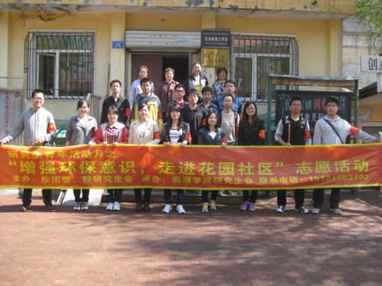 为大力推进“我的中国梦”主题校园文化建设,弘扬“奉献、友爱、互助、进步”的志愿者精神,全面提高研究生文明素质及社会责任感,在哈工大青年活动月进行之际,在校团委及校研究生会的号召下,3377体育研究生会秘书处策划组织的“增强环保意识,走进花园社区”志愿活动成功举办。