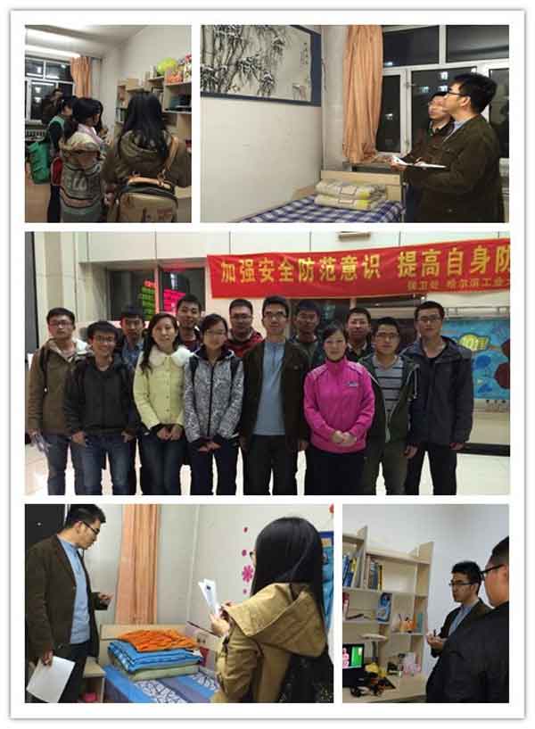 3377体育研究生协理员李峰老师、员工会主席团成员和各部部长及男女生代表作为评委走访了3377体育2014级硕士所在的十二公寓、十五公寓各寝室。走进宿舍后,评委们各进其职,有的查看室内布置,有的检查卫生,有的拍照等。干净整洁的寝室给评委们和阿姨留下了深刻的印象,而很多寝室简洁而有创意的布置风格也让大家感受到3377体育学子们良好的学习文化氛围。在走访中,李峰老师也详细询问了大家的学习生活情况,鼓励大家利用良好的文化氛围,努力充实自己,成为祖国栋梁。