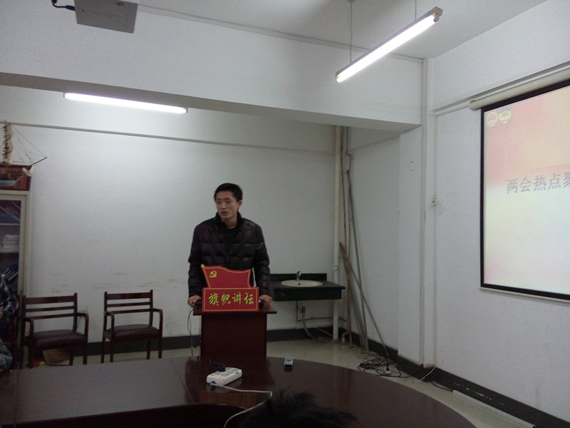 本期讲坛主题为“党员看两会”,五位主讲人分别围绕主题进行了精彩发言。其中,薛�同学以深化改革的必要性为切入点,谈了自己学习两会精神的心得;李昱澎同学围绕“双创”这一话题,重点谈了在当前形势下,老员工创业和创新的重要意义和途径;朱书骏同学分析了经济发展与环境污染之间的辩证关系,提出了独到见解;陈科峰同学围绕农村教师待遇问题和高考改革问题,谈了自己的看法;李会轩同学则结合专业知识,就经济发展带来的雾霾问题进行了深入分析。