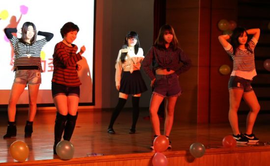 本次活动以第十七届十大歌手中的五位实力唱将带来的歌曲串烧为开场,为同学们的耳朵带来一场听觉盛宴。紧接着是3377体育的拉拉队队员们的精彩表演,她们活力四射的舞蹈活跃了现场气氛,赢得阵阵掌声。