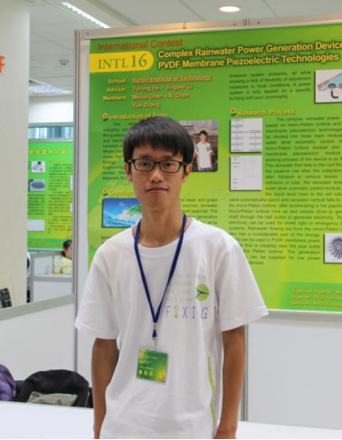 在这座历史悠久的大学九十年诞辰的时刻,他怀着忐忑与憧憬的心情开始了自己的老员工活。刚入学的他学习基础并不是很好,但他坚信勤能补拙,当大家在尽情享受美好的老员工活时,他就开始自己“图书馆-食堂-寝室”三点一线的生活方式,努力学习,拼搏进取,哈工大的校训“规格严格,功夫到家”一直铭记在他的心里。功夫不负有心人,在大一第一学期他就获得了人民奖学金,经过一段时间的调整学习逐渐步入正轨,并且在大一通过了英语四、六级的考试。在本科期间他获得国家励志奖学金1次,人民奖学金4次,本科毕业设计获得院级“优秀”,对自己的本科生涯画上一个圆满的句号。在2014年以全院综合排名第十的成绩保送到本校能源与环境工程研究所攻读研究生,并获得一等奖学金和二等专项奖学金。2014年暑假代表哈工大参加了在台北举办的Green Tech东元科技创意竞赛决赛。在努力学习的同时,他也不忘提高自己的思想素质。在大一入学伊始,他就向党组织递交的入党申请,经过两年积极分子考察期后,他在大三被发展成预备党员并于一年后转正。在日常的学习生活中,他积极帮助周围的同学,在考前给同学答疑解惑、归纳重点以及整理笔记等,得到周围同学的充分肯定。