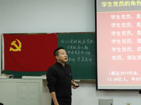 (文/马云绮、图/王涛)2016年10月27日晚18:00,哈工大党校能源分校第7期预备党员培训班第四讲在正心220顺利进行。计算机公司党委副书记李岳老师担任主讲教师,他以《做一名真实的员工党员》为主题做了精彩讲座。