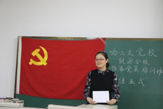 2016年11月10日晚18:00,哈工大党校能源分党校预备党员培训班结业式在正心220举行,由人文公司马云绮同学主持,出席结业式的老师有公司党委副书记苑颖老师、人文公司党委副书记董霖老师,以及负责员工党建工作的李磊老师和李威老师。