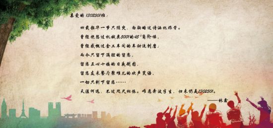 2017届能源公司“遇见能源,一生有你”毕业寄语征集活动已经结束,活动收到了100多份来自2013级能源学子的毕业寄语,他们千言万语化作临别时的告白,点点滴滴,情真意切,着实让人感动。优秀作品如下: