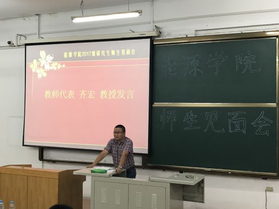 见面会上,田振辉书记首先致辞,他代表公司对新生们表示欢迎,并向全体新生提出殷切期望,希望同学们志存高远,脚踏实地,勤于思考,勇于创新,在短暂且珍贵的两年研究生的时光中提升学术水平,修炼个人品格,成为一名全面发展的工大人。随后,教师代表齐宏教授结合自身经历从生活、学习、科研三方面与同学们分享了对研究生生活的理解,并期望同学们在生活中加强体育锻炼,注意身体健康;在学习中积极开拓思路,勇于提出问题;在科研中满怀学术热情,培养坚毅品格,在工大这个梦开始的地方放飞理想,实现人生价值。