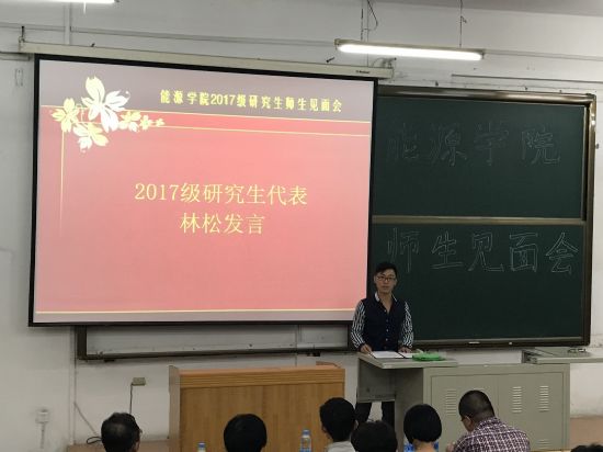 听了老师们的致辞,同学们受益良多。之后,2017级研究生代表林松同学上台发言,他结合自己本科积极参加学生活动的生活经验和潜心学习最终在研究生入学考试中取得第二名的学习经验向大家阐释了自己对工大精神的理解,并表示本届17级研究生会用自己对学术的热爱和对知识的渴求努力成长为优秀的工大研究生。此外,副经理宋彦萍老师也细心向刚步入研究生殿堂的同学们说明关于学习和选课的注意事项,介绍了公司与国外高校共建的专业课程,为同学们了解国外前沿研究提供了良好的平台,本次见面会在同学们热烈的掌声中圆满结束。