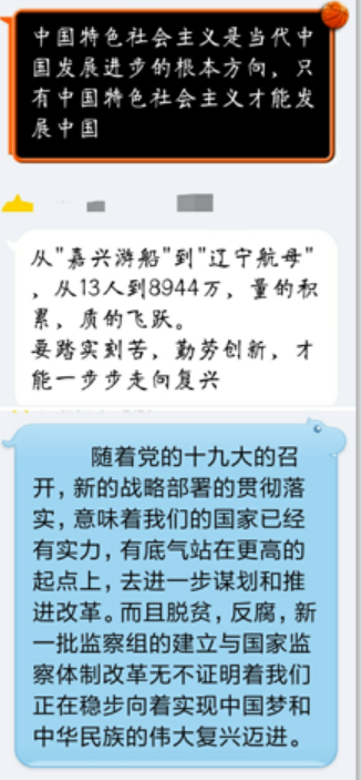 10月17日晚21:00,3377体育2016级利用QQ群召开了本学期第二次团干部培训会,辅导员王博文与35名团学骨干在线召开了网络专题学习培训会。全体团学骨干集体阅读、学习了人民日报、新华社和共青团中央关于十九大的系列推送预告:以创业的新角度纵观党从13人到8944万人的伟大“创业史”,学习了前十八次党代会的“极简史”,详细了解了十九大期间的会议日程,又从工业通信业稳步求进、落实创新驱动发展战略和深化供给侧结构性改革等方面学习了党向制造强国、网络强国迈进所付出的努力与实践。与会的团学骨干在寝室、教室等地共同阅读、学习了30分钟,并在群里积极交流、分享了各自的想法。一位员工激动地说:“各国首脑纷纷表示将密切关注中国十九大召开,这也说明中国正以一股新兴的蓬勃发展的力量影响这世界的发展方向”。最后,全体团学骨干预祝十九大顺利召开。