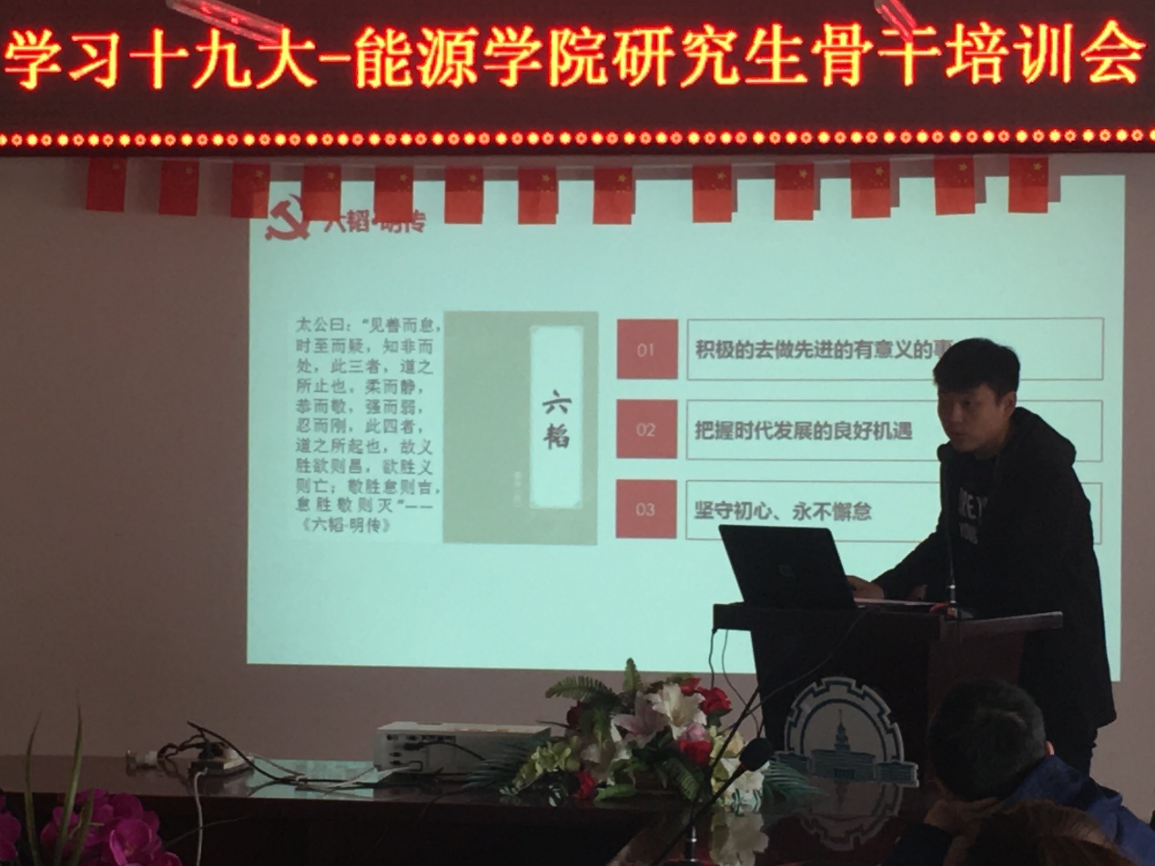 本次会议于10月20日下午在动力楼619召开,会上,张舜禹同学首先带领全体员工干部学习十九大报告,他指出:“中国梦属于我们每一个人,实现中国梦是我们当代青年员工应担起的历史使命,也是我们义不容辞的责任。习近平总书记讲话的重要思想我们应在实践中落实,为实现中国梦助力。”此外,为引导2017级研究生学习领会哈工大的传统与精神,张舜禹带领同学们学习了马祖光精神。会上他通过对马祖光院士的生平介绍使同学们感受到了马院士克己奉公、淡泊名利的崇高美德和甘为人梯、谦逊质朴的无私襟怀。