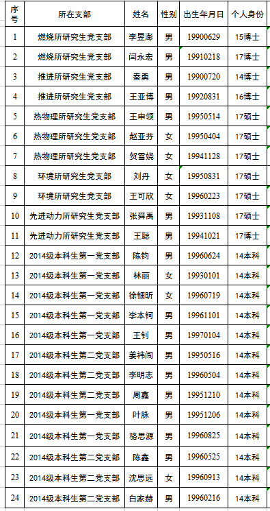 能源公司根据发展党员工作有关要求,现将近期24名拟转正党员的有关情况公示如下: