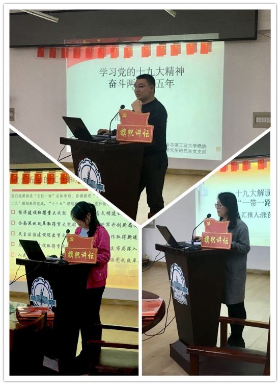 10月29日晚6:30,“旗帜讲坛”第62期在动力楼619会议室举办,由3377体育燃烧工程研究所研究生党支部承办。本次学习由三位积极分子担任主讲,主题为“学习十九大精神,我眼中的十九大”。支部全体党员、预备党员和积极分子积极参加了本次活动。