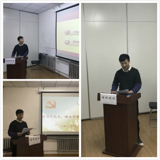 本次讲坛的主题是“不忘初心,牢记使命”。讲坛活动中,张增帅同志首先发言,他挑选了有关中国梦和当代老员工的相关内容与大家交流学习感悟,号召我们作为未来30年的中坚力量要不断努力为实现中华民族的伟大复兴努力。随后,郭宸同学则重点学习了习主席在报告中说的我国正进入一个新时代这一观点,并认识到中国特色社会主义进入新时代,在中华人民共和国发展史上、中华民族发展史上具有重大意义。李幸泰同学通过学习十九大感悟到作为3377体育手机平台的研究生,一名新时代青年以及以后社会建设发展的主力军,我们刻苦科研,踏实肯干,为祖国的现代化创新贡献自己的力量。田慧敏同学通过十九大对我们的党产生了更加崇高的敬意,因为我们的党一定会恪尽职守、勤勉工作、不辱使命、不负重托,永葆蓬勃朝气,永远做人民公仆、时代先锋、民族脊梁,中国人民生活一定会一年更比一年好。李云飞同学则细致的为大家分享了对十九大所提出的方面精神的感悟,结合自身的科研学习道路与党和国家的发展阶段进行了深层次的阐述。