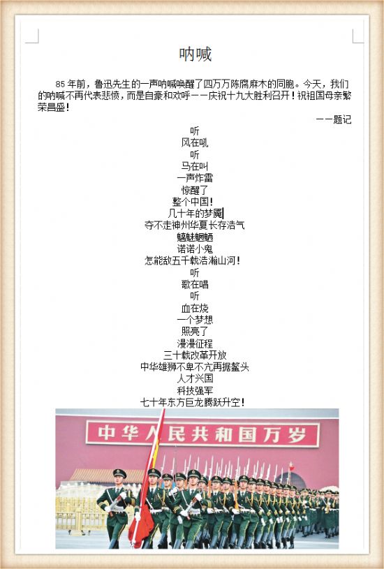 在本次比赛中公司的同学们围绕十九大,创作出了优秀的作品,四位获奖同学的作品各有特色,张增帅同学的作品《祖国——我为你骄傲》,通过抒情优美的文字表达了对祖国的热爱之情,以作为一名中国青年而自豪,渴望为祖国的发展做出贡献。杜贺同学通过创作诗歌《呐喊》,抒发了对十九大胜利召开的激动之情。王聪同学的作品《从觉解中看冯友兰的人生境界》则结合十九大以及自身的阅读和生活经历探讨了许多深刻的感受。韦健飞同学的作品《关于科学技术》,则是以十九大精神为指导思想对我们的科学技术进行了深入的思考并写出了自己的感悟。此次征文比赛取得初步的成功,后续的活动还会陆续展开。