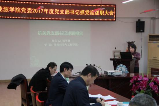 各党支部书记分别从所在党支部基本建设情况、“三会一课”制度落实情况、党支部特色工作及主题党日开展情况、“两学一做”学习教育常态化制度化、学习党的十九大精神落实情况、存在的问题和改进措施、下一年度工作计划等方面进行述职。各位党支部书记用详细数据、具体事例汇报了所在党支部2017年工作开展情况,田振辉书记和孙垠副书记分别对教工党支部和员工党支部逐一点评。他们首先对2017年度各党支部的工作给予肯定,感谢各位支部书记以高度责任心履职尽责。同时针对各党支部工作中存在的一些实际问题,对各个支部提出了新的要求。