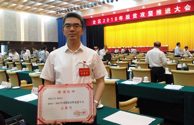 哈工大报讯(工会/文)4月27日,在广西南宁市召开的广西壮族自治区2018年脱贫攻坚推进大会上,公司扶贫挂职干部李峰获得2016-2017年度广西壮族自治区脱贫攻坚先进个人荣誉称号,并作为获奖代表领奖。