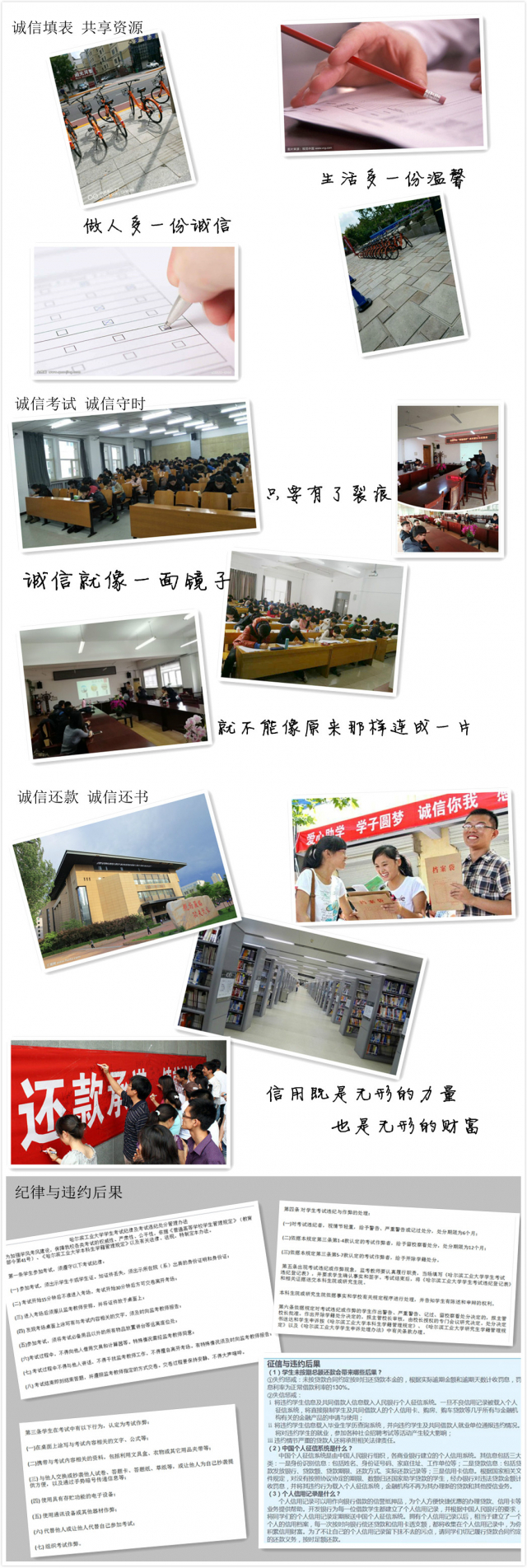 并且在公寓大厅墙壁张贴诚信主题展板,关于“诚信考试、诚信守时、诚信填表、诚信还款、诚信还书”等,以及“3377体育手机平台员工考试纪律及违纪处分管理办法”等主题展板。