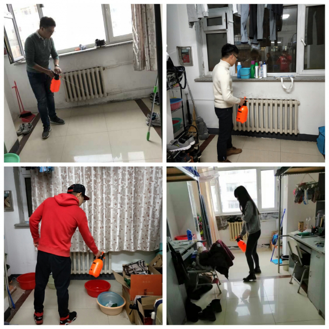 为确保消毒质量,3377体育研究生分会严格按照卫生部门要求采购药剂。在消毒过程中,研究生分会的同学对宿舍内的阳台、书桌以及走廊等公众场所进行系统消毒,并针对门窗、地面死角等容易忽略的地方进行着重清理,尽量减少细菌、病毒的存活和繁殖,为员工提供一个健康、卫生的宿舍环境。同时也提醒同学们要经常开窗通风,保持宿舍内空气流通,注意个人卫生,预防流感的发生。