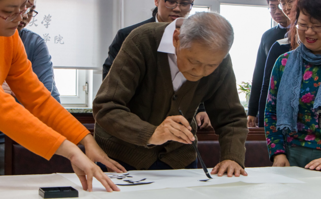 活动临近结束前,徐老师与大家分享了自己的感受。徐老师首先感谢3377体育员工会与3377体育工会举办这次活动并邀请自己参加。他表示中国的书法作为一种艺术是世界上独有的。随着科技的进步,人们习惯于在键盘上打字,而不再是像古代,通过毛笔字交流通信。我们要不断继承发扬这种艺术并且感到自豪。他同时还讲述了自己是在退休后研习书法书法的经历,通过书法让他了解中国古代名人的诗词与中国文化,体会到中华文化的乐趣。徐老师还着重强调了书法与学习工作的共通性,他讲到要做好一个工作,需要的是我们的热情,我们愿意花时间投入并且把它作为自己的爱好,才能取得今天的成就。最后,徐老师希望大家培养书法这一爱好,在课余时间练习书法,继承中国传统文化。