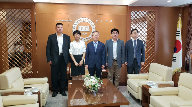 6月13日,李炳熙教授、何玉荣教授以及张昊春副教授在汉阳大学访问,汉阳大学董事长韩国翰林院院士Woo Seung Kim教授和韩国工程院/翰林院院士Kwan Soo Lee教授在董事长办公楼会议室热情接待。汉阳大学董事长韩国翰林院院士Woo Seung Kim教授简要介绍了汉阳大学的创办历程、员工规模、学科设置、对外交流与合作等情况。汉阳大学董事长韩国翰林院院士Woo Seung Kim教授表示,哈工大与汉阳大学都是世界知名的工科强校,建立合作交流关系已经多年,希望继续强强合作,进一步加深在员工联合培养、教师互访、科研合作等方面的合作。