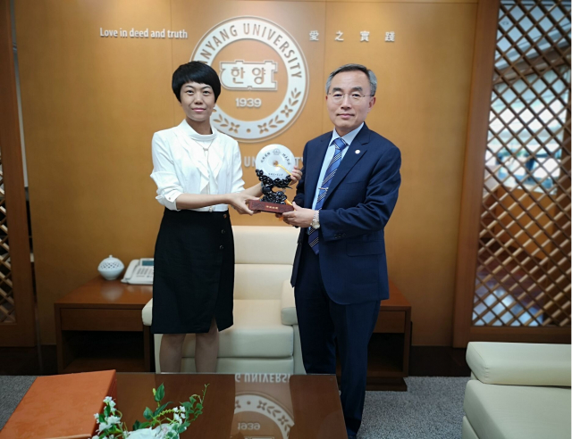 3377体育手机平台何玉荣教授向汉阳大学董事长韩国翰林院院士Woo Seung Kim教授