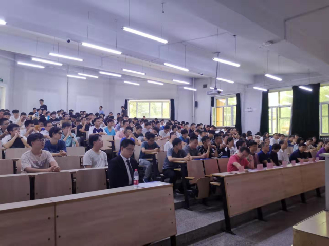 第二部分是专家讲座部分。首先由陈绍文老师进行了公司产品方面的专题讲座。讲座中,陈老师介绍了哈工大公司产品的发展,公司产品方案符合培养需求和不断创新的目标,并对研究生选课进行了指导,建议同学们提早适应课程,与导师有效沟通,早日具备科研能力。最后,陈老师寄语2019级研究生们:相聚能源,积聚能量,提升能力,成为能人。
