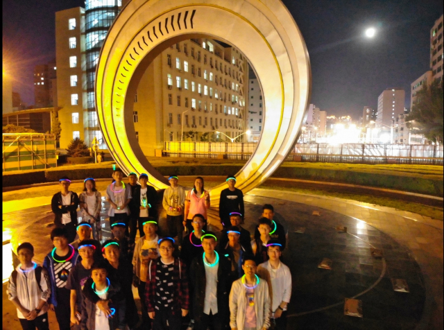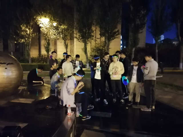 在哈工大之星前的小广场,同学们三五成群的来到活动场地,大家用荧光棒连结成大大小小的夜光圈,戴在手上、头上,映衬着皎洁的月光,给这团圆之夜增添了更多节日的欢乐。辅导员王博文老师现场为同学们分发了月饼,同学们在欢声笑语中一边品尝月饼,一边赏月,一边许下自己的愿望。最后,张博瑞同学为大家带来的精彩的横笛独奏。笛声、明月、月饼、还有相聚在一起的同学们,共同组成了令人难忘的中秋团圆之夜,让没法与家人团聚的同学们同样体会到了团聚的感觉,对啊,我们能源就是一个大家庭。