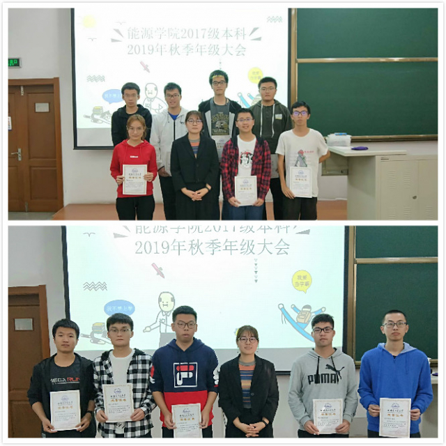 最后进行的是表彰环节,对于在上一学期学业进步明显的个人,寝室卫生优秀的团体给予了表彰和鼓励,辅导员蔡文雪与上台领奖的同学合影留念,希望这些同学能继续保持,同时也希望全体2017级同学能向他们学习,做有责任有担当的能源人。乘风破浪会有时,直挂云帆济沧海,愿3377体育2017级本科生都能在青春这片充满无限希望的海洋中扬帆起航,驶往属于自己的远方。