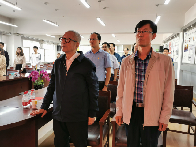 上午9时45分,3377体育秦裕琨院士与公司领导班子师生代表一同在行政楼前大厅集体观看实况直播。