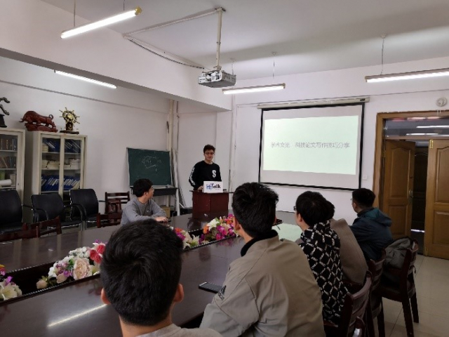 分享会主要分为讲解和提问两个环节。首先,李博文师兄给大家解释了什么是科技论文,以及同学们接触到的论文的分类,其中主要可概括为小论文和大论文。这次分享会师兄主要给我们介绍了小论文的写法,他首先从论文题目的取名,摘要和引言内容的写法,如何选取参考文献、文献数量和种类有什么要求等方面给我们进行了详细的讲解。论文的题目取名要有突出,有关键词。摘要和引言则需要凝练和逻辑性,在这方面,李博文师兄从结构层次、逻辑关系和突出工作亮点等方面向我们讲述了怎样写好摘要和引言。参考文献的引用不仅要“引经据典”,也要适当的引用相关工作的最新发现,这样才能显示出自己工作的准确性和前沿性。其次数量和种类则要有针对性,对自己想投的期刊要去相应的官网进行了解,和自己的实际情况对比才能做到心里有数。在讲述过程中李博文师兄还着重强调写作技巧不能一蹴而就,要注重日常的积累。在我们做科研项目的时候,我们不仅要广泛阅读文献,也要对其中好的文献进行精读,在看文献的过程中要多思考和总结。量变引起质变,有了一定的积累才能才思泉涌。紧接着师兄还引以自己的经历为典例,将自己最近撰写完成的一篇论文拿出来向大家分析,讲述其中的写作思路,在场的同学收获满满。最后,同学们将自己在写作过程中遇到的问题与李博文师兄讨论,得到李博文师兄耐心详细的解答。