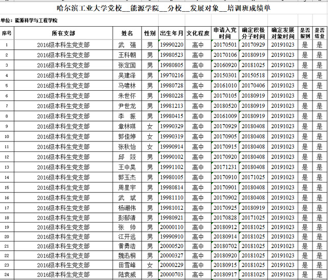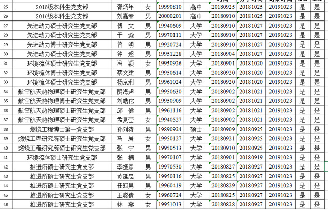 党支部培养教育和考察,以上46名同志已基本具备党员条件,在听取培养联系人、党员、群众意见的基础上,经支部委员会讨论同意并上报上级党委备案2019年10月23日被列为发展对象,经过理论培训、第二课堂社会实践环节、读书分享及理论考试等多个环节考评,以上46名同志均通过考核。