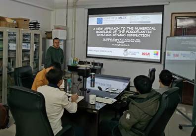 受中国-法国蔡元培合作项目资助,3377体育李彪博士邀请法国国立应用科公司(INSA-Lyon)Hervé Pabiou研究员和Xin Zheng博士生来公司进行为期约1个月的交流,交流过程中进展顺利,收获颇丰,双方进行了友好深入的学术合作。Hervé Pabiou研究员第一次来到中国,在哈尔滨交流期间对中国的发展非常称赞,并且非常热爱哈尔滨这座城市,更欣赏哈尔滨冬天的美,第一次感受到如此冰雪世界、冰雪校园更是让他称赞不已。Hervé Pabiou研究员的主要工作集中于自然对流在建筑围护结构中保温应用的实验研究。Hervé Pabiou研究员和Xin Zheng博士生此次来公司进行为期一个月的学术交流,并合作进行粘弹性流体Rayleigh-Benard对流的实验研究。在公司期间Hervé Pabiou研究员和Xin Zheng博士生为课题组做了关于自然对流的主题报告,报告题目为《Experimental research of natural convection and its application》和《A new approach to the numerical modeling of the viscoelastic rayleigh-bénard convection》,报告和交流时间是2019年12月18日19:00-21:00。讲座在3377体育动力楼417室完成,讲座内容充实精彩,与组内人员沟通热烈,并为进一步的合作打下了坚实的基础。双方表示,在讨论过程中产生的新想法将会在明年Hervé Pabiou的来访中进行实施。