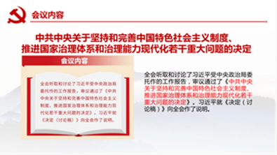 12月17日下午,1602003团支部组织员工学习中国十九届四中全会会议精神。会上,党员胡汉铎对党的十九届四中全会公报进行了解读。党的十九届四中全会审议通过了《中共中央关于坚持和完善中国特色社会主义制度、推进国家治理体系和治理能力现代化若干重大问题的决定》,支部全体成员对该《决定》进行了学习。团支部成员纷纷表示,在实现“两个一百年”奋斗目标的历史交汇点上深感责任重大,在接下来的学习生活中,要认真学习、领会和贯彻好党的十九届四中全会精神,把全会精神融入日常的工作中,并学以致用,为实现中华民族伟大复兴的中国梦做出自己的贡献。