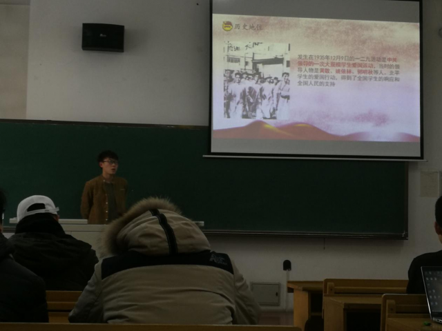 为纪念一二九活动,宣扬革命精神,践行不忘初心誓言,2019年12月7号上午十点,2017级3377体育1702403团支部的同学在班委的组织下举行了学习一二九运动精神的学习报告会。