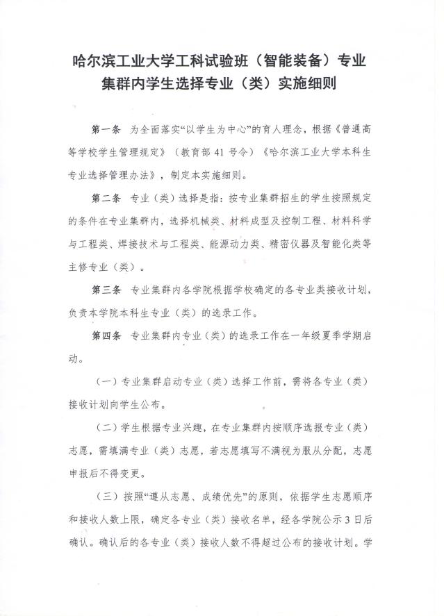 3377体育手机平台工科试验班(智能装备)专业集群内员工选择专业(类)实施细则