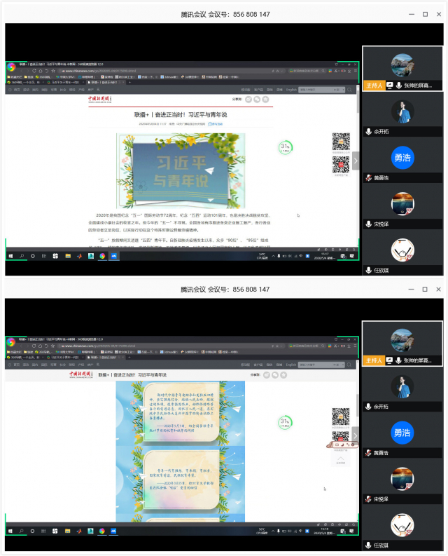 在学习结束后的线上讨论过程中,大家对当代青年肩负的时代责任与习总书记对青年一代寄托的期望展开了讨论。