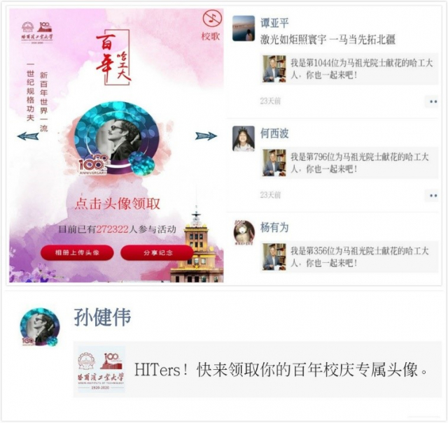 为了弘扬这种精神,19S00201团支部全体成员通过微信平台参与哈工大百年头像领取、“云”寄相思等活动,并积极阅读、宣传哈工大“马祖光”院士相关事迹的报道。