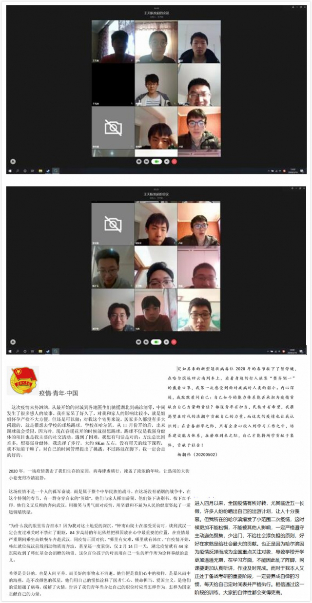 为在建校百年的重要阶段深入推进爱国主义教育,培养堪当大任的新时代青年,贯彻党中央关于新冠肺炎疫情防控各项决策部署,3377体育1702402团支部于5月2日下午在线上开展了“疫情·青年·中国——线上思考体悟交流会”团日活动。本次活动由团支书刘子仪主持,支部全体成员参加了本次活动。
