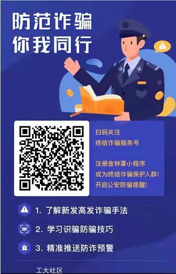 七、注意财产安全,警惕网络诈骗、信贷陷阱等事件,建议员工扫描文末二维码注册金钟罩小程序。