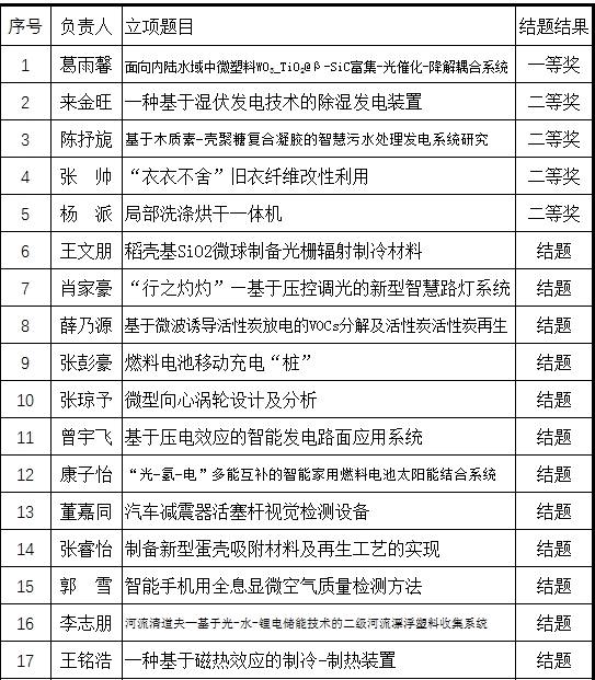 2021年10月7日,能源学源举行大创项目立项答辩、结题验收会议,经员工负责人申请,评委审查,2021年新立项项目23项,结题验收项目17项(2020年秋立项)。现将结题结果进行公示。如有异议,请在公示期内联系宫汝志,联系电话13836034807。