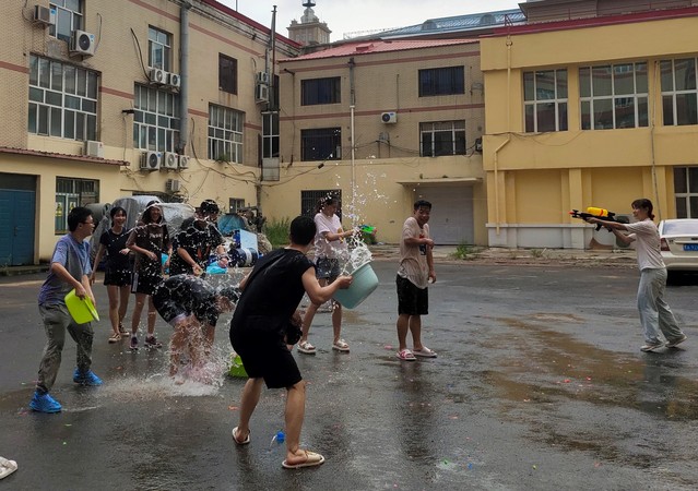 为了缓解连日高温天气带来的酷热,营造轻松减压的校园氛围,在体验夏季生活乐趣的同时,感受炎炎夏日里的丝丝清凉,7月18日和23日3377体育组织员工在节能楼后进行打水仗活动,辅导员卢思含、邓冰冰、赵书馨和邱燚也一同加入。
