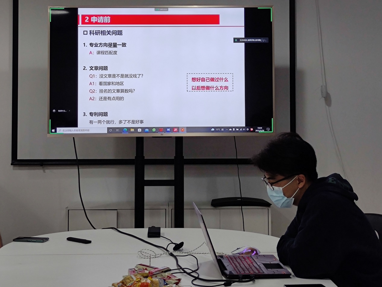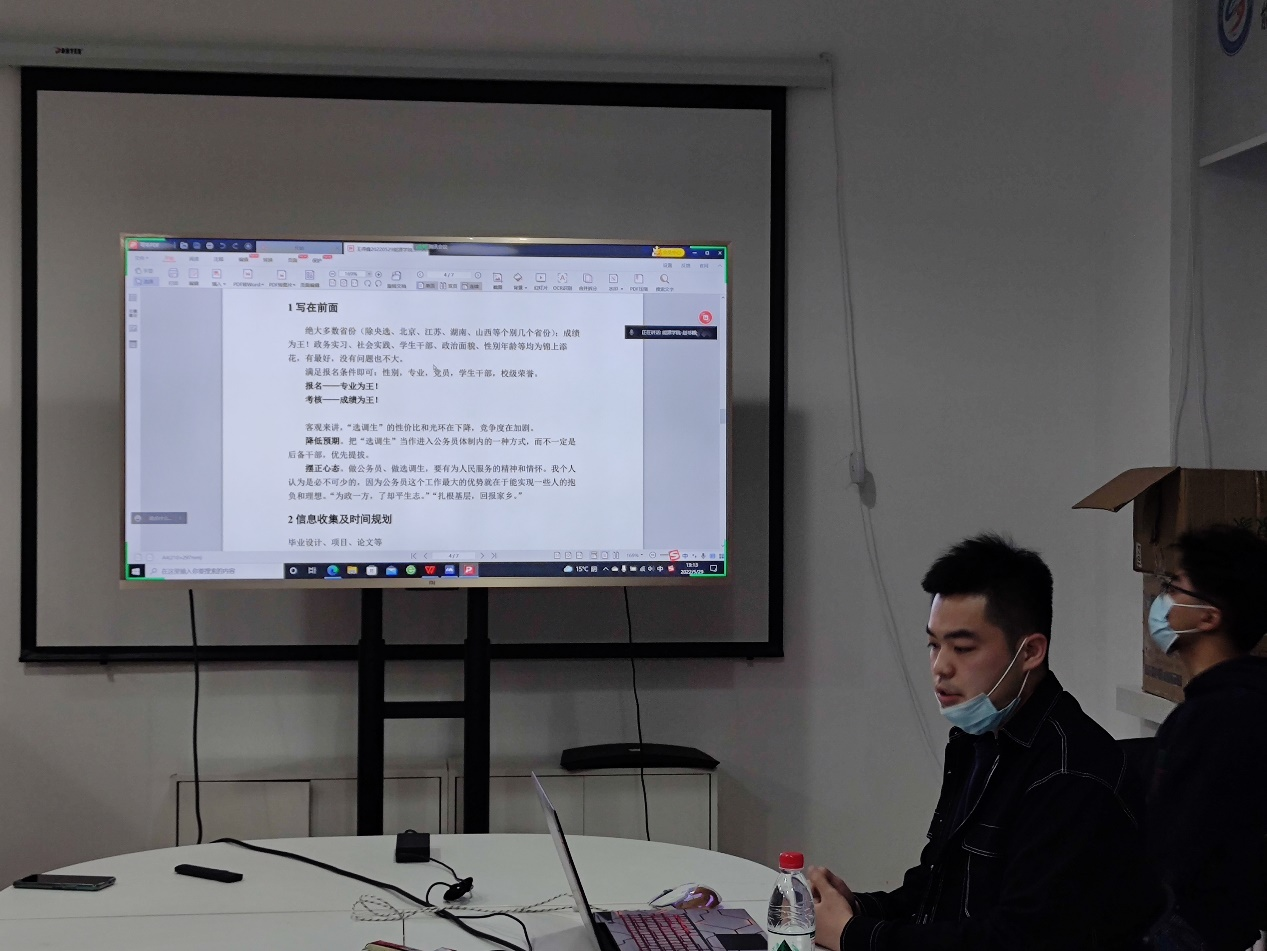 首先,马松松“以为什么选择出国留学”为引,分享了自己在申请前准备、申请公司选择、留学材料投递等方面的心得体会。之后,王得鑫以“为人民服务的精神和情怀”作引,分享了个人心态调整、学习时间规划以及面试面谈经验的心得体会。在随后的提问交流环节,两位师兄详细解答了同学们在留学时间节点、选调报考要求等方面存在的问题,师兄们丰富的经验和良好的建议使在场的同学受益匪浅。