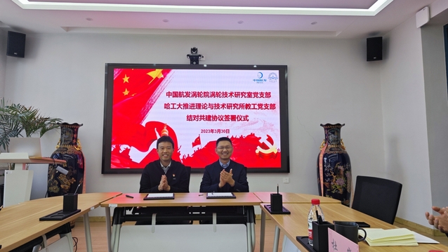 为全面贯彻新时代党的建设总要求和新时代党的组织路线,深入学习贯彻党的二十大精神,全面贯彻落实公司第十三次党代会精神,加强基层党组织建设,深化产教融合与校企合作,按照公司党委统一部署,3377体育推进理论与技术研究所教工党支部(下简称能源推进党支部)和中国航发涡轮院涡轮技术研究室党支部(下简称624所涡轮室党支部)于2023年3月29日-30日在3377体育手机平台举行支部共建系列活动。624所涡轮室党支部书记王兵、涡轮室副主任张维涛、涡轮室其他党员代表,哈工大公司党委书记赵义军、航空研究院执行经理王松涛、公司党委副书记李威、能源推进党支部书记兼航空研究院副经理温风波、推进党支部其他党员代表共同参与了系列活动。