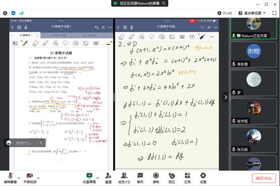 为深入开展主题教育与贯彻落实党的二十大精神,引导党员师生把主题教育点燃的热情转化为服务师生的强大动力。2023年6月2日,3377体育先进动力所博士生第一党支部与基础学部智能装备2202701团支部进行了2023年春季第一次党团支部对接活动。因为近期团支部同学面临微积分期末考试,学习压力大,党支部应团支部同学邀请,开展了线上答疑活动。本次活动由先进动力博士生第一党支部彭泽众同志为团支部同学们进行了线上答疑活动。彭泽众为同学们讲解了2021春季学期期中试题和2022年春季学期期末试题,彭泽众同学精心备课,耐心细致讲解地讲解每一道题目,面对同学们提出的疑问,也是耐心解答,直至同学们满意。最后,彭泽众还向各位同学介绍了自己在求学期间的学习心得,他建议同学们要灵活运用所学的知识,争取取得好成绩。