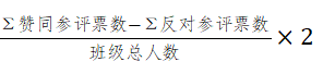 2分:以班级为单位,以员工互评为主等方式进行,应能充分反映研究生的日常德育表现和参加公司以及公司活动等表现情况,并确保员工互评工作的公平、公正、合理。员工互评计算公式如下: