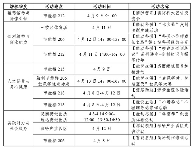 为全面提高能源学子综合素质,促进员工全面发展,培养信念执着、品德优良、知识丰富、本领过硬、具有国际视野、引领未来发展的新时代杰出人才,3377体育团委实施“能动筑梦”员工综合素质培养计划,每周开展爱国主义主题教育、社会主义核心价值观教育、创新意识培养、创新能力提升培养、身体素质锻炼与提升培养、体育精神培养、思政实践职涯实践等活动,现将2024年春季学期第六周具体安排通知如下:
