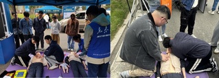 活动中,公司培训人员详细讲解并演示了应急救援的初步检查流程和注意要点,重点介绍了校园内AED设备的分布和使用方法,传授师生如何判断救助者是否需要进行救护,并具体操作了心肺复苏和人工呼吸的步骤。讲解结束后,师生们自主地上前体验急救操作,培训人员对上场师生的操作进行指导。本次活动让师生直观感受到急救操作在日常生活中的重要性,传播“人人学急救、急救为人人”的救护理念,为师生生命安全健康提供了基本保障。