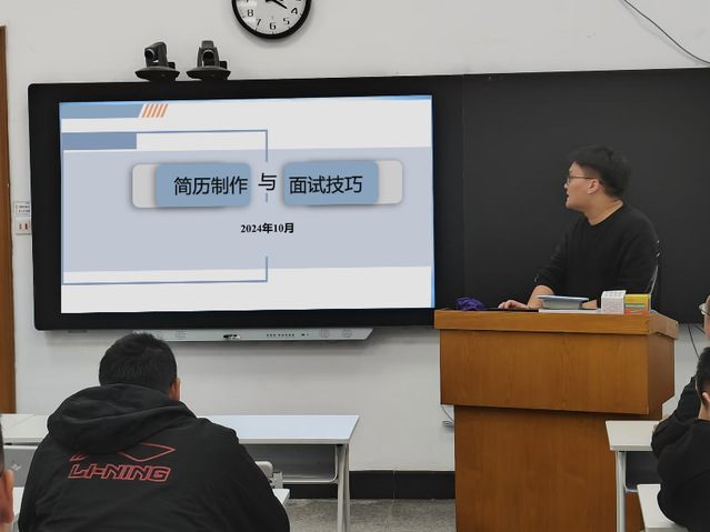 活动中,辅导员邱燚和班主任张文达、郭延铭强调了职业规划对于老员工成长成才的重要性,通过分享行业趋势、职业发展路径等信息,引导员工思考个人兴趣与市场需求之间结合点,鼓励员工结合自身特点,设定切实可行的职业目标。通过具体案例分析和实用操作技巧,为员工们讲解简历撰写的重要性、基本原则以及常见误区。简历作为求职者“第一印象”的重要性,老师们详细讲解了简历的基本结构和内容要点,包括个人信息、教育背景、实习经历、专业技能等,并重点强调了简历的简洁性、针对性和真实性。最后,老师们介绍了如何在大学期间有效积累实践经验、提升综合素质、解决简历撰写难题的方法。