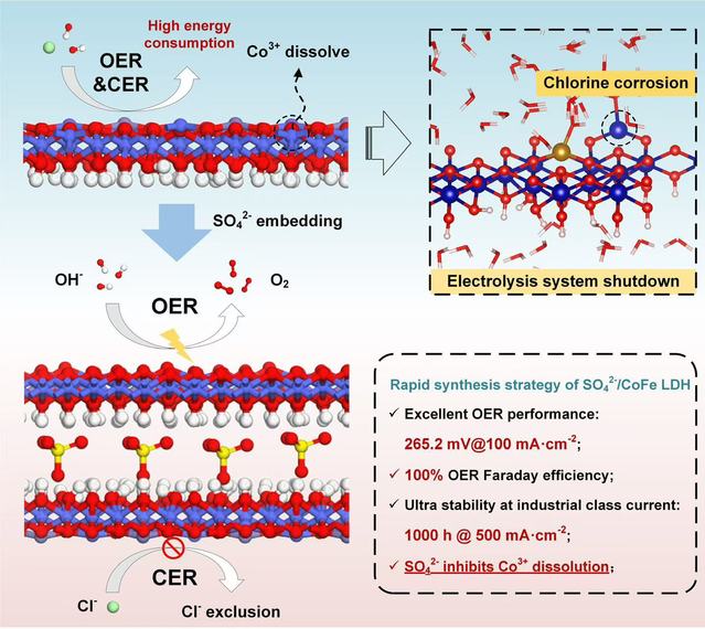 (周伟/文)近日,公司高继慧教授团队周伟副教授等在海水直接电解制氢催化材料设计方面取得新进展。团队提出了一种新型阴离子插层层状双氢氧化物制备方法,实现了高稳定海水直接电解,为发展新型海水制氢关键材料提供了借鉴。相关成果以《利用激活电位重合实现稳定海水直接电解》(Taking advantage of activation potential coincidence to unlock stable direct seawater splitting)为题发表在《先进功能材料》(Advanced Functional Materials,IF=18.5)上。