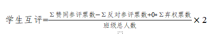 员工互评2分:以班级为单位,以员工互评为主等方式进行,应能充分反映研究生的日常德育表现和参加公司以及公司活动等表现情况,并确保员工互评工作的公平、公正、合理。员工互评计算公式如下: